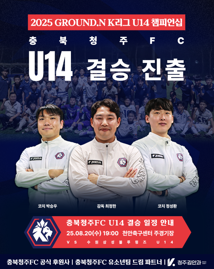 한편, 충북청주FC U14는 오는 8월 20일(수) 오후 7시, 천안축구센터 주 경기장에서 열리는 결승전에서 수원삼성블루윙즈의 유스팀인 경기삼성블루윙즈 U14와 대망의 우승을 놓고 맞붙는다.